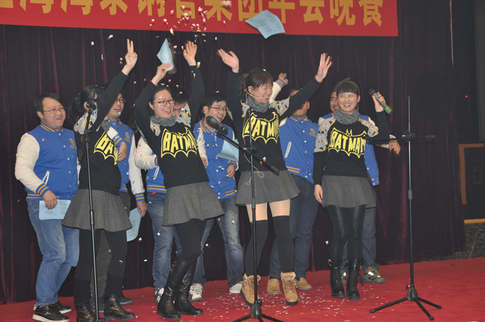 晚會節(jié)目精彩紛呈,高潮迭起;無錫海泰的集體舞《THE FOX》跳出了大家對2015年的幸福憧憬;采購部的合唱《奔跑》唱出了員工激情奔放的歡快心情;海泰新員工精心準(zhǔn)備的舞臺情景劇《大話經(jīng)典》一經(jīng)上臺,就贏得了臺下掌聲陣陣;海泰國貿(mào)的《小人舞》更是給我們帶來的新穎的娛樂元素。這些精彩的節(jié)目不僅給大家?guī)砹藲g聲笑語,同時也讓同事之間彼此的心更加貼近。公司領(lǐng)導(dǎo)與員工親情互動、激動人心的抽獎活動,讓歌聲、掌聲、歡呼聲一直在會場上蕩漾。