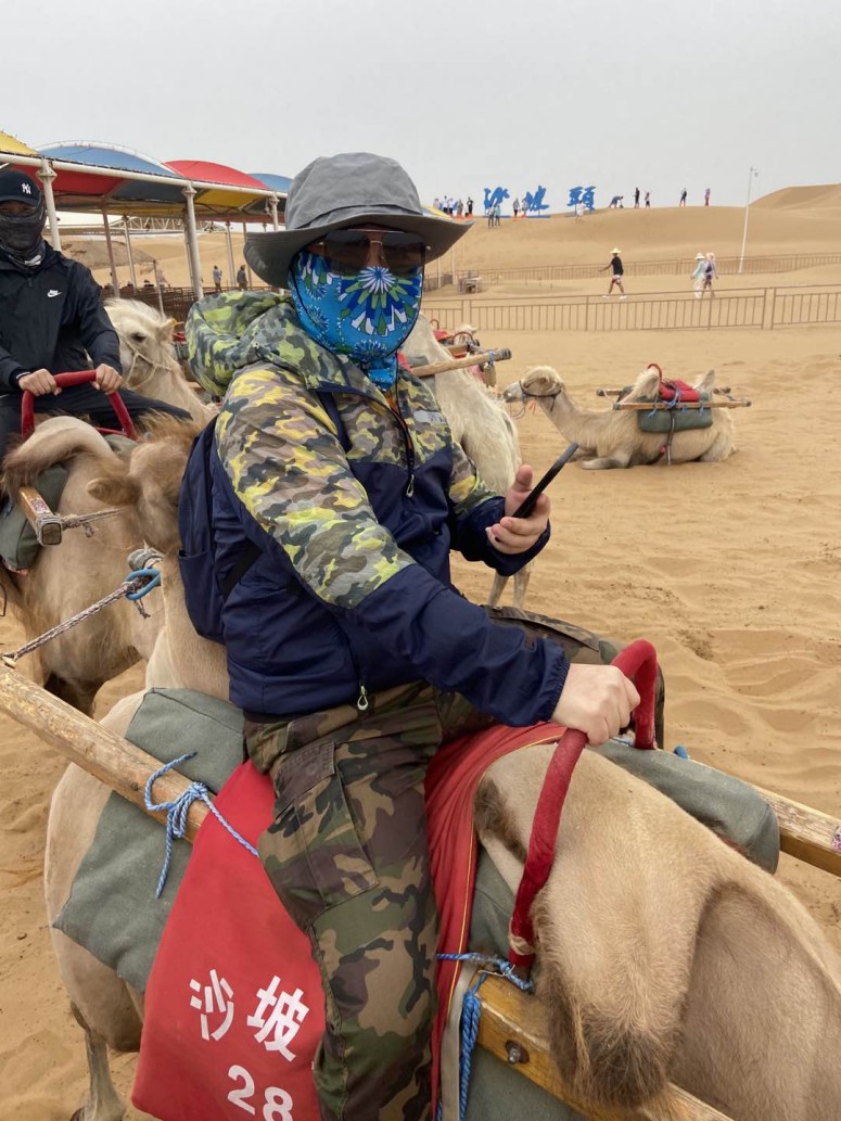 第二天出發(fā)沙坡頭。蒙古民族以“蒼天”為永恒最高神,故謂“長生天”(蒙語讀作“騰格里”)。騰格里沙漠位于內(nèi)蒙古西部和甘肅省中部,東至賀蘭山,南越長城,西至雅布賴山,是中國第四大的沙漠。沙坡頭位于騰格里沙漠的東南緣,東起二道沙溝南護(hù)林房,西至頭道墩,北接騰格里沙漠,南臨黃河,長約38公里,寬約5公里,海拔在1300~1500米,總面積4599.3公頃,占中衛(wèi)市城區(qū)土地總面積的3%。是國內(nèi)四大鳴沙之一,也是全國二十個(gè)治沙重點(diǎn)區(qū)之一。如果你在螞蟻森林種樹,那么中衛(wèi)是你和你種的梭梭樹相見的大好機(jī)會(huì),螞蟻森林有一片樹林就是種在寧夏隔壁的內(nèi)蒙古阿拉善盟。