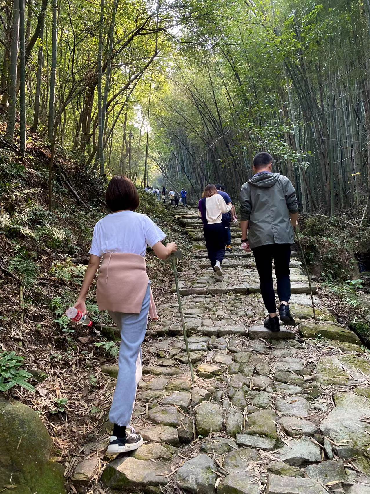 在大家初嘗過古道前半段的“舉步維艱”之后,體力都消耗了不少,后半段有體力不支的同事們就逐漸掉了隊。為了大家的安全,有小伙伴自發(fā)地走到了隊尾押隊,確保每位同事都能安全愉快地到達終點。