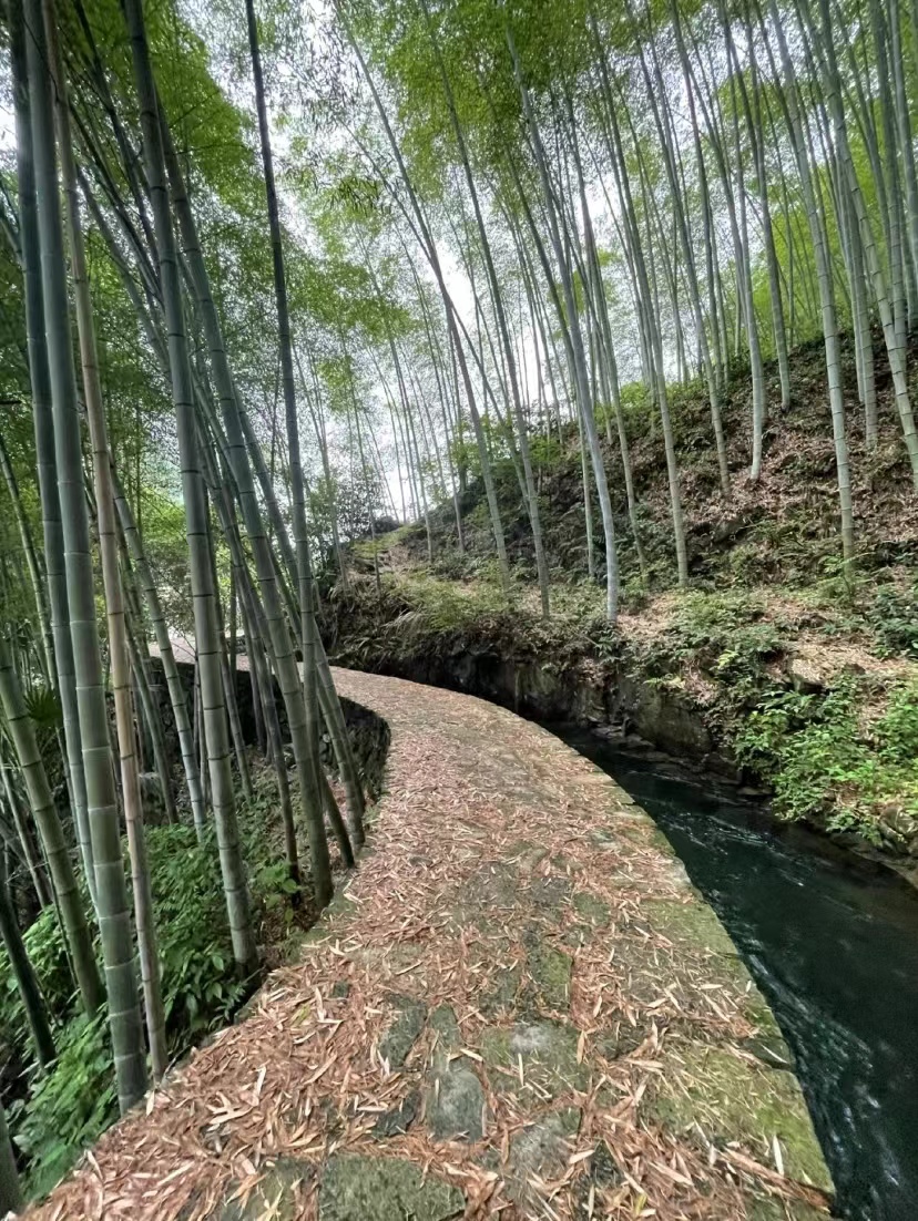 清晨,綠葉上的最后一滴露水被陽光蒸發(fā),揉著惺忪的睡眼,不知不覺中我們已經(jīng)來到了有著紹興“茶馬古道”之譽的上青古道入口。上青古道作為徒步界的經(jīng)典古道線路,蜿蜒綿長,旅人們拾級而上,就像蒸騰而上的水蒸氣,逐漸消失在茂密的竹林里。