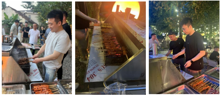 傍晚時(shí)分,夕陽的余暉灑滿大地,大家稍作整頓后,興致勃勃地聚在民宿寬敞的后院內(nèi),準(zhǔn)備開啟一場(chǎng)難忘的露營(yíng)之旅。有人挺身而出,熱情地為大家操持燒烤,那香氣四溢、滋滋作響的美食令人垂涎三尺;有人則激動(dòng)不已地迎來了與網(wǎng)友的首次線下相聚,歡聲笑語中洋溢著滿滿的喜悅與溫馨。