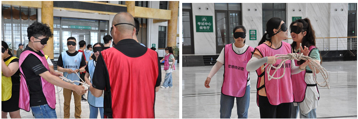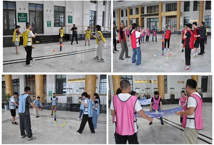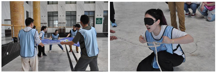 “合力筑塔”、“世界球”、“盲人方陣”,通過另外三組游戲,培養(yǎng)團隊配合協(xié)作能力,加強團隊精神;培養(yǎng)團隊成員之間的溝通方式與行為方式的變化;激發(fā)團隊成員的參與意識,讓每個組員都能扮演好各自的角色,為完成團隊任務(wù)做出貢獻。同時也從游戲中發(fā)現(xiàn)了存在并且要予以糾正的問題: