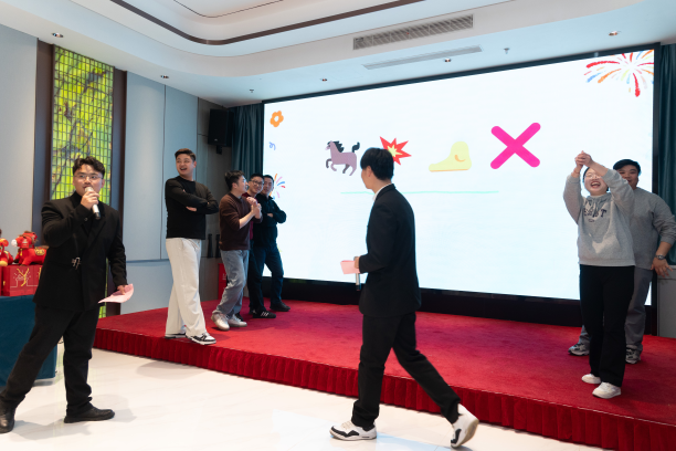 年會節(jié)目與互動環(huán)節(jié)精彩紛呈。“馬年猜猜樂”以emoji表情包為謎面,引發(fā)陣陣歡笑與機智應(yīng)答;“聽歌識曲”環(huán)節(jié)則憑借熟悉的旋律點燃全場熱情?,F(xiàn)場掌聲、笑聲不斷,在輕松愉悅中深化了團隊默契,真正體現(xiàn)出“散時各自閃耀,聚時同心奮進”的融合精神。