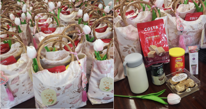 一大早,辦公區(qū)就被濃郁的節(jié)日氛圍包裹,精心籌備的禮包整齊排列,每一份都承載著公司對(duì)女員工的認(rèn)可與關(guān)懷。