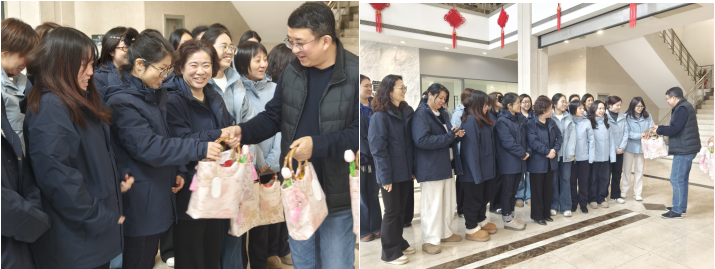 上午時(shí)分,領(lǐng)導(dǎo)們親自將禮包送到每位女員工手中,一句句“節(jié)日快樂(lè)”“辛苦了”溫暖又親切,雙手傳遞的不僅是實(shí)用的好物,更是沉甸甸的重視與惦念!