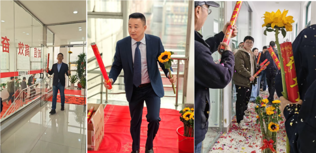 擺成8字的萬(wàn)響鞭炮,18個(gè)炮仗、18個(gè)煙花依次排開(kāi),寓意著“準(zhǔn)備就緒,蓄勢(shì)待發(fā)”,為新征程積蓄滿滿能量。8:28吉時(shí)一到,無(wú)錫海泰總經(jīng)理劉斌先生點(diǎn)燃第一炮,聲聲炮響震徹場(chǎng)地,象征著無(wú)錫海泰正式開(kāi)啟全新篇章,所有員工依次續(xù)燃,將現(xiàn)場(chǎng)氛圍推向了高潮。