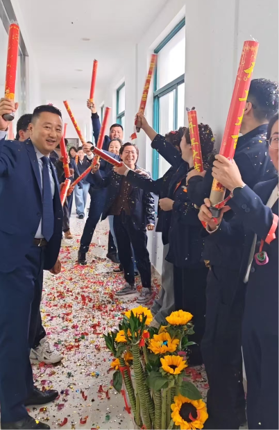 隨著銷售經(jīng)理一聲“吉時(shí)已到,3、2、1——”,全員齊聲吶喊:“新址新家,業(yè)績(jī)長(zhǎng)虹!開(kāi)工大吉!” 禮炮齊鳴,彩紙紛飛,將儀式的溫暖與力量傳遞給每一個(gè)人。